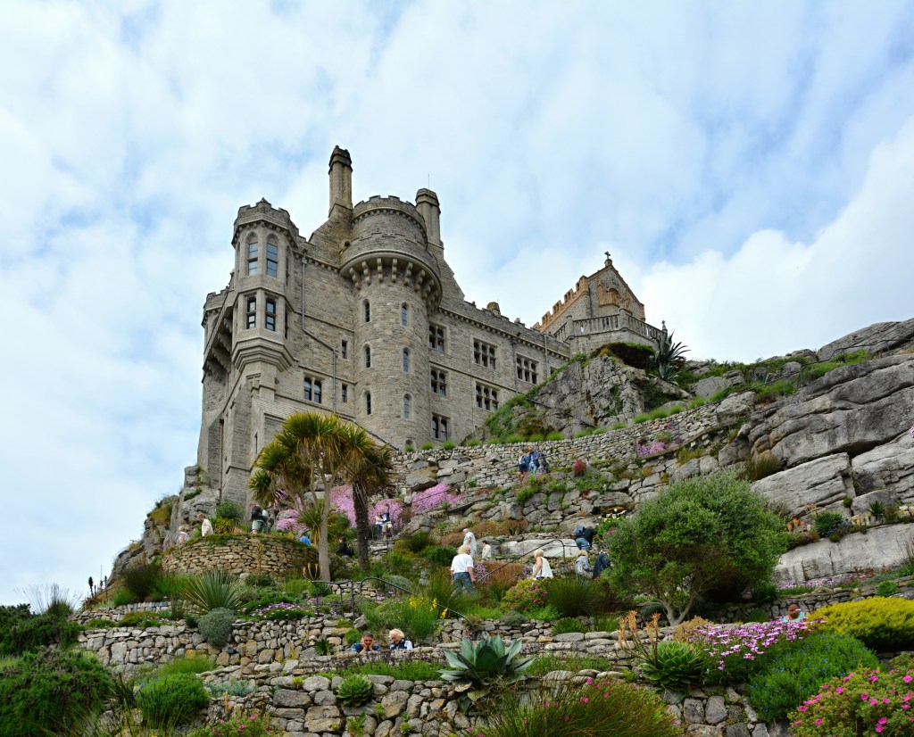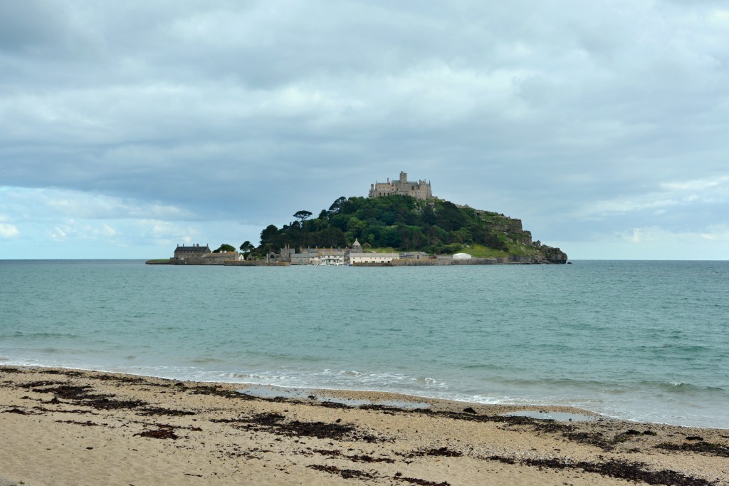 Na to, co nás čeká potom, se moc těšíme. Je to totiž hrad ležící v moři! No vlastně je na malém ostrůvku, ale i tak je to super! Jmenuje se Saint Michael´s Mount a od pevniny ho dělí jenom žulový chodníček, který je schůdný pouze při odlivu. Pokud je příliv, chodník zmizí pod vodou a vy se tak k hradu (nebo z opačného směru) můžete dostat jenom na lodičce. Je tedy potřeba si pohlídat, kdy nastává příliv. My hrad navštívili dopoledne a zpátky na pevninu se vrátili suchou nohou. Odsud jsme si to zamířili zase na jiné památky, ale když jsme pak odpoledne okolo projížděli, chodník už byl úplně pod vodou (fotku najdete níže).