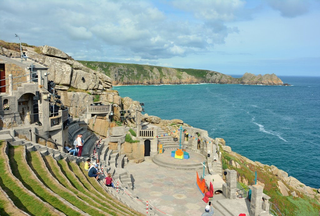 Opravdu jedinečnou stavbou je ovšem The Minack Theatre – divadlo pod širým nebem ležící na skále nad mořem. Voda je zde krásně azurová a tak odpočíváme a užíváme si úžasnou energii, kterou tohle místo rozhodně má.