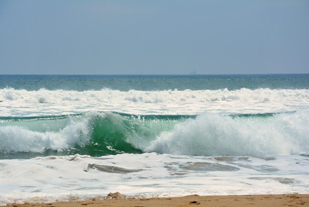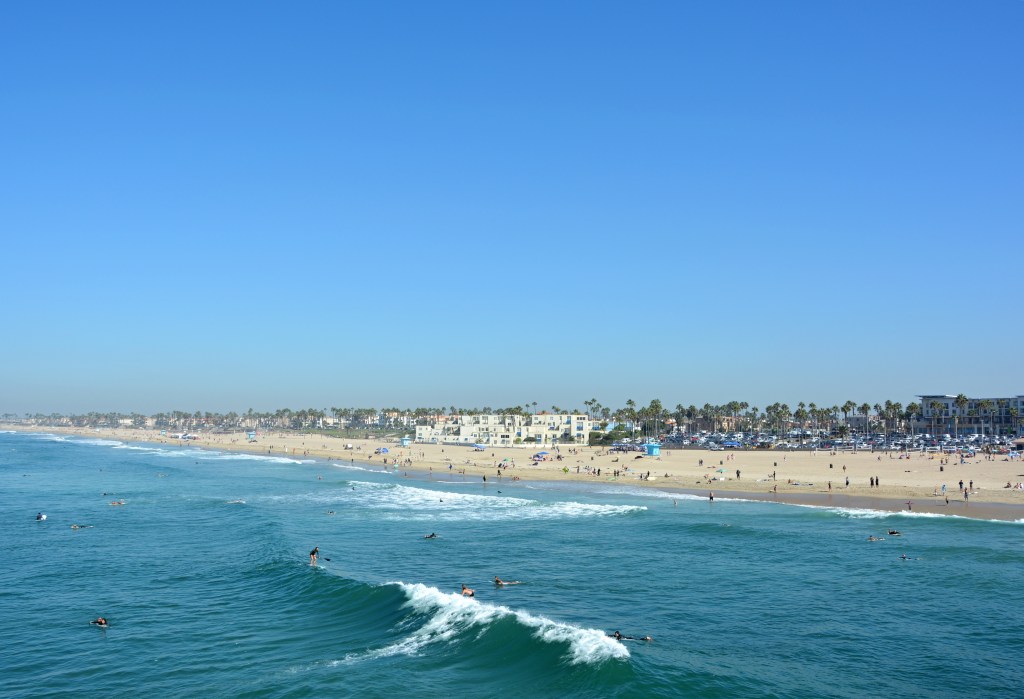 Čím začít, co vidět dřív? V Orange County je spoustu krásných a zajímavých míst. Celá oblast se rozprostírá na rozsáhlém území a vzdálenosti jsou zde značné. První kontakt s oceánem jsme měli na Huntington Beach. Každá pláž je jiná – jiné vlny, jiný sestup do oceánu, jiný písek. Svoje typické vlny má také Huntington. Jsou velké a párkrát se nám stalo, že nás pěkně „semlely“.