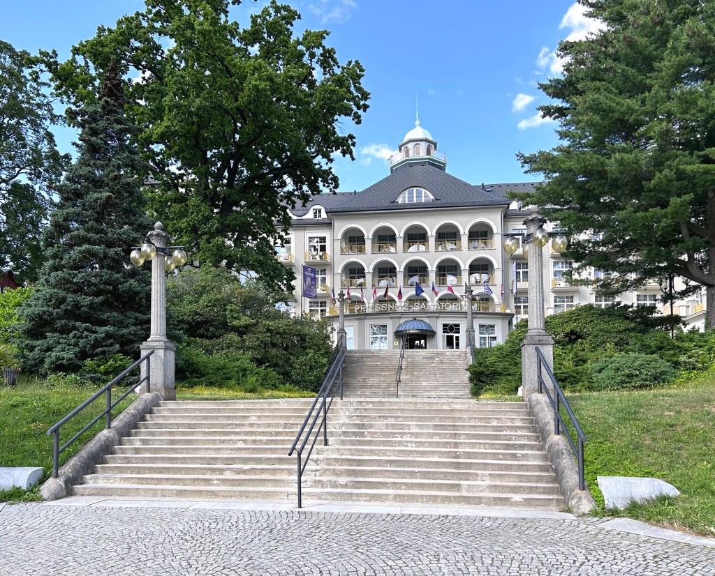 Začátkem července 2023 vyrážíme poznat Jeseníky – hory, o nichž se říká, že mají nejčistší vzduch u nás. Počasí nám přeje, na celou dobu našeho čtyřdenního pobytu totiž hlásí letní teploty. Přijíždíme na okraj obce Lipová-Lázně, abychom se tu naobědvali. Později se sem vrátíme, protože tu máme zarezervované ubytování (konkrétně v části Horní Lipová). První den však chceme poznat vedlejší město Jeseník a především Priessnitzovy lázně vybudované na kopci nad městem, na úbočí Studničního vrchu.