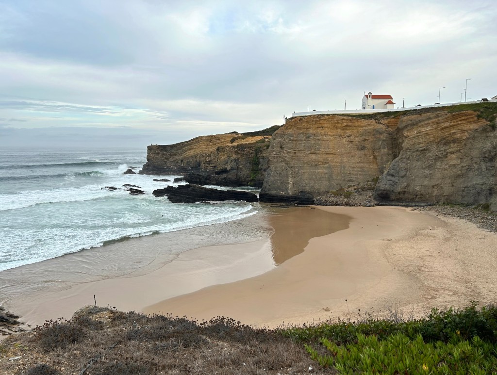 5. září 2023: Co se týče kilometrů, čeká nás nejkratší den. Z krásné Zambujeiry vycházíme v osm hodin. Chvíli pozorujeme surfaře, jak se pere s vlnami oceánu. Pak vyrážíme vstříc stoupání. Těch bude dnes několik. Ještě se několikrát ohlédneme za sebe na město, ve kterém se nám moc líbilo. Znovu jdeme nad plážemi, slyšíme hučení moře, občas odbočíme do vnitrozemí. Míjíme dokonce malou zoo s pštrosy (měli by tu mít i zebry, ale ty jsme neviděly). Když procházíme kolem farmy s traktory, zastavuji, abych klukům udělala fotku. I když máme traktorů u nás na vesnici spoustu, určitě je to potěší. Doplňuji energii raw tyčinkou z Lidlu.