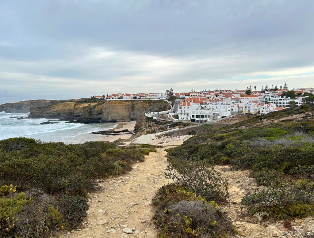 Zanedlouho mám zase hlad a tak zastavujeme ve vesnici Azenha do Mar na zeleninovou polévku a džus s lisovaných pomerančů. Čeká nás klesání a pak zase stoupání. Dnes je to taková houpačka, nejdřív padáme dolů, abychom se za moment zase škrábali do kopce. Část cesty jdeme i neoblíbeným pískem. Musíme vynaložit spoustu síly, abychom ho prošli, protože se dost zabořujeme. Když se nám naskytne výhled na pláž Praia de Odeceixe se spoustou surfařů, víme, že na ubytování zbývá jenom kousek. Odkláníme se od moře do vnitrozemí, chybí nějakých pět kilometrů. Už se na nás začíná podepisovat našlapaná vzdálenost předchozích dnů – jsme unavené a jdeme na autopilota.