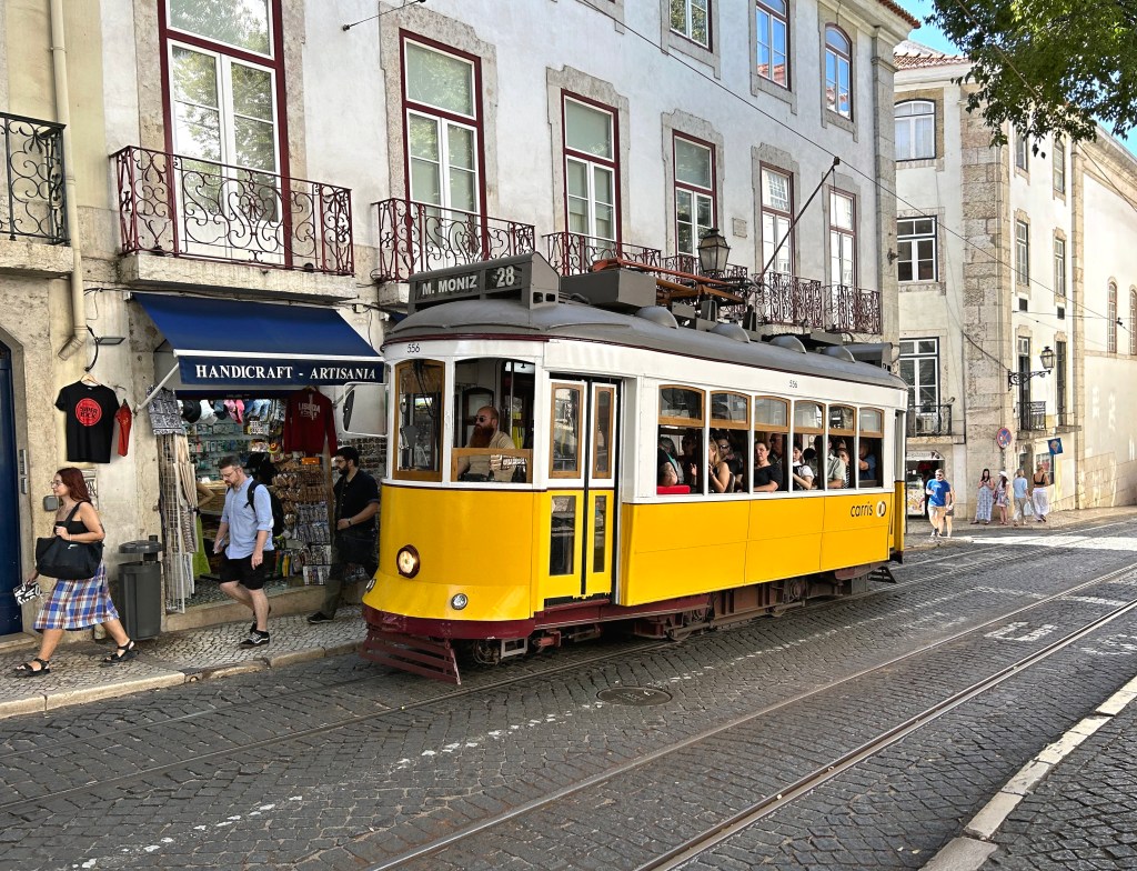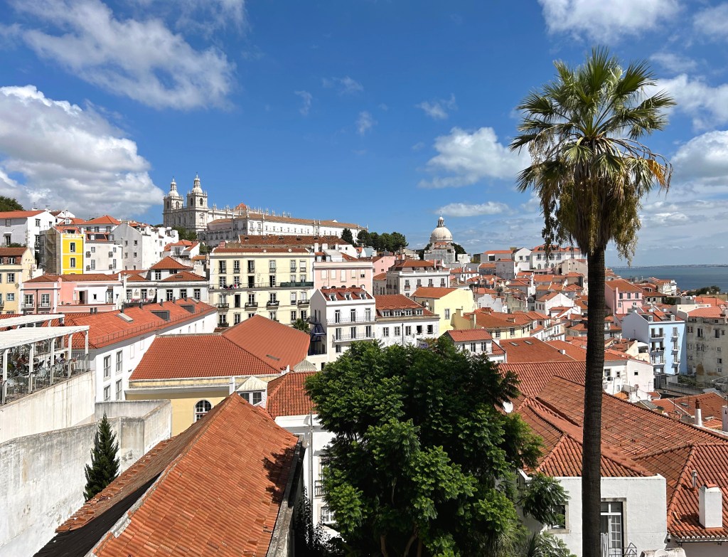 7. září 2023: Na závěr našeho putování po Portugalsku se vydáváme poznat hlavní město Lisabon. Dopoledne přijíždíme městskou hromadnou dopravou do centra, na náměstí Praça do Comércio. Necítím se příjemně, davy turistů jsou velkým kontrastem k předchozím dnům v krásné přírodě, kde jsme zřídkakdy někoho potkaly. Potom, co si obstaráme něco k jídlu, stoupáme na kopec nad městem, kde je několik vyhlídek (Miradouro da Senhora do Monte, Miradouro da Graça). Máme Lisabon jako na dlani. Vidíme také hrad Castelo de São Jorge, ke kterému se za chvíli přesuneme.