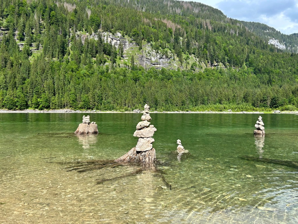 Z Hallstattu si odvážíme příjemný zážitek a přesouváme se k nedalekému Vorderer Gosausee. Od jezera by měla být vidět hora Dachstein. V našem případě tato situace nenastala, protože vrcholky byly schované pod mraky. Jezero jsme obešli celé dokola, děti se opět vyřádily a vyzkoušely vodu 🙂 Odtud už spěcháme zpátky na hotel a mňamózní večeři, která nás tam jistě čeká 🙂