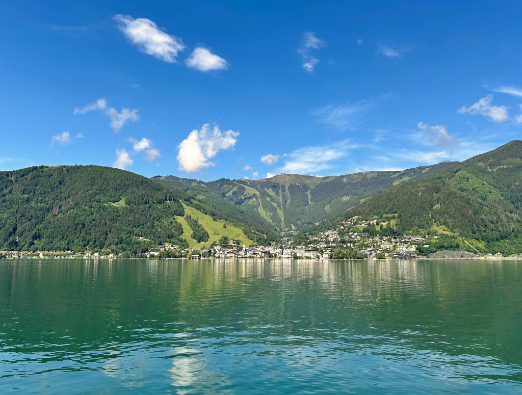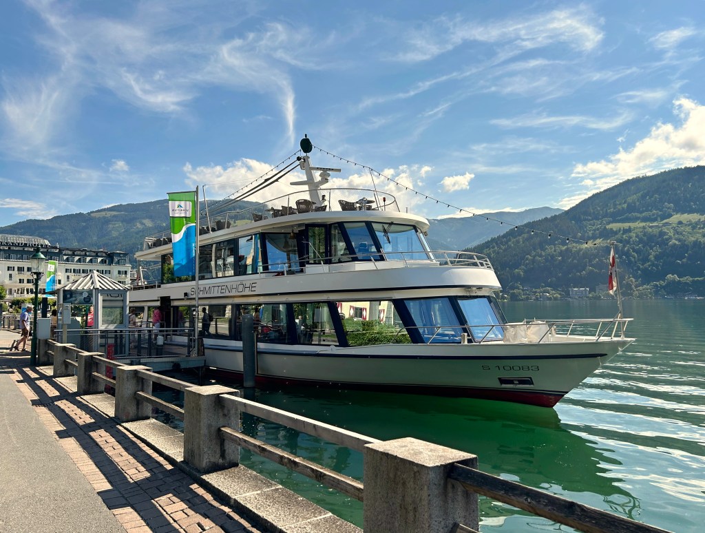 Dalšího dne ráno spěcháme na autobus. Po dvou dnech mimo oblast našeho dočasného bydliště jsme si řekli, že je na čase více prozkoumat Zell am See. Máme tedy namířeno do centra města a potom do přístaviště, odkud jezdí výletní loď po jezeře. Pro děti je to první cesta lodí. Okružní jízda trvá 45 minut, stihneme si tak z vodní hladiny prohlédnout celé okolí jezera.
